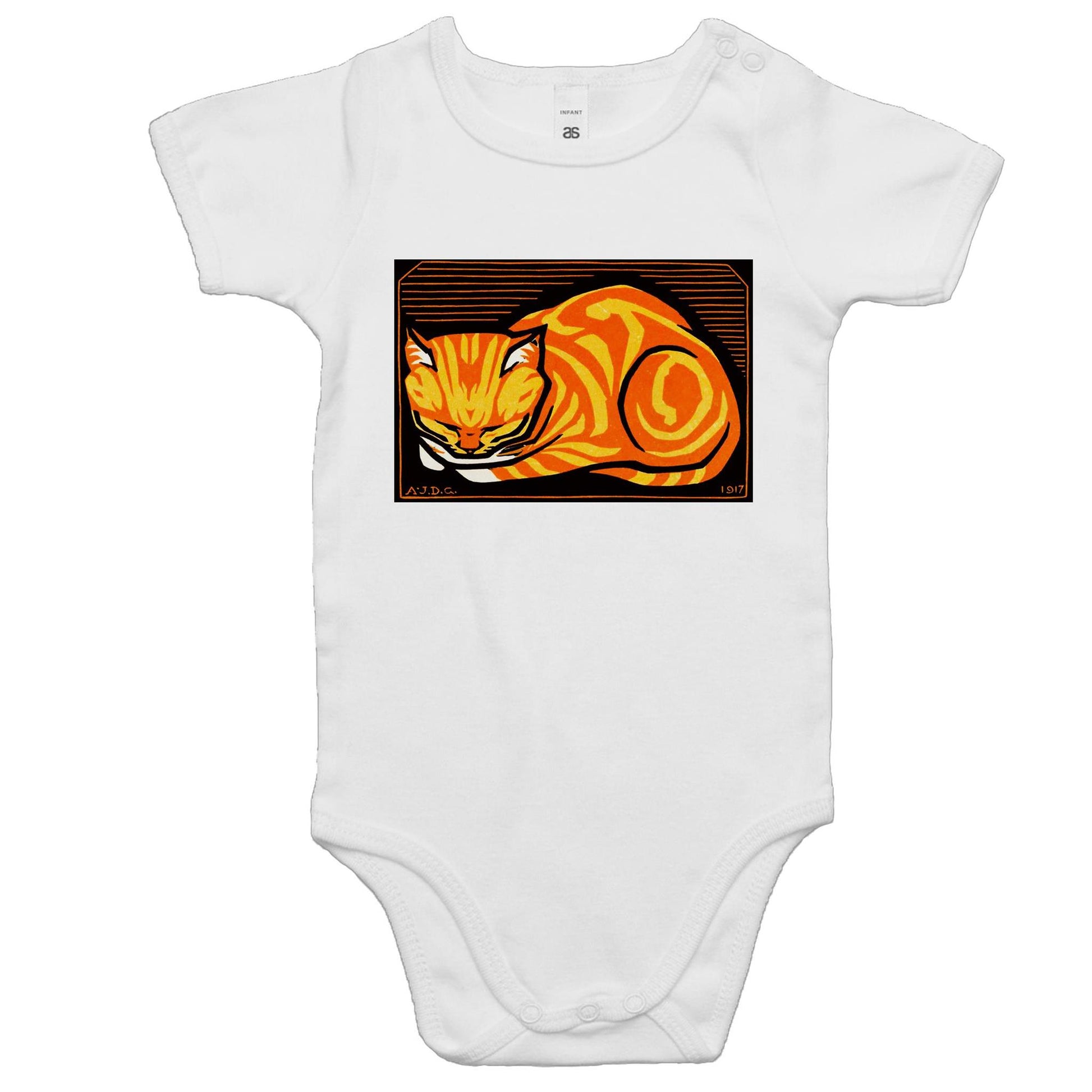 Shop December Cat by Julie de Graag - Baby Onesie Romper by Arty Threads and update your baby's wardrobe with a super comfy, high quality onesie romper from our awesome arty baby onesie collection. This arty baby romper is made to order and shipped from Australia. Available in 5 sizes: 0-3m, 3-6m, 6-12m, 12-18m, and 18-24m.