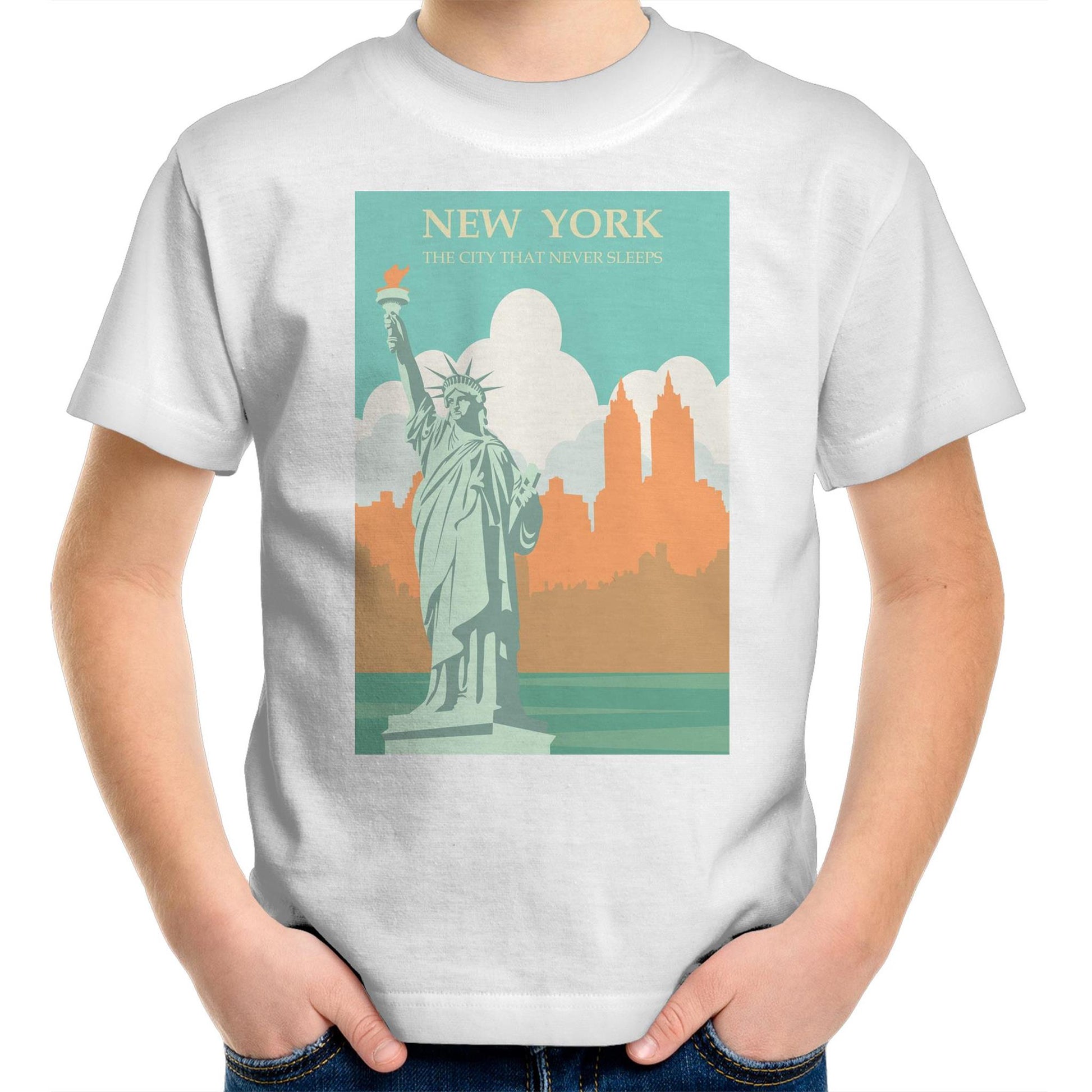 Shop New York The City That Never Sleeps - Kids T-Shirt by Arty Threads and update your child's wardrobe with a super comfy, high quality tee from our awesome graphic tee collection. This arty tee is made to order and shipped from Australia.